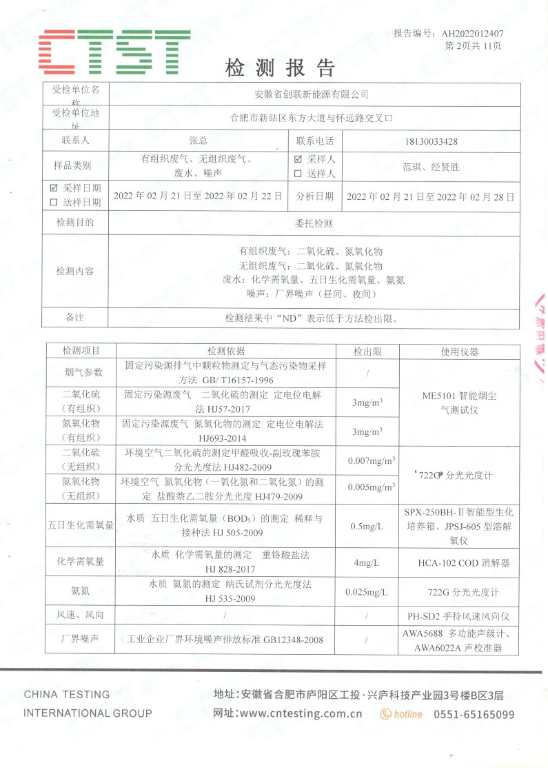 安徽省創(chuàng)聯(lián)新能源有限公司600Nm3/h 天然氣現(xiàn)場 制氫項(xiàng)目竣工環(huán)保驗(yàn)收公示